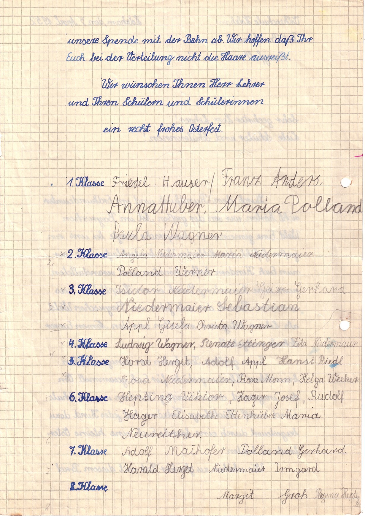 Sammlung schul-, orts- und heimatgeschichtlicher Aufzeichungen, begonnen 1932 von Lehrer Rudolf Gehling, zusammengestellt, neu bearbeitet und ergänzt von Lehrer Hans Langesee, fortgesetzt von Lehrer Edgar Salfer, fortgesetzt im Sommer 1960 von Hauptlehrer Josef Greschniok
